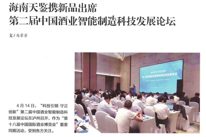 中外酒業刊登——《海南天鑒攜新品出席第二屆中國酒業智能制造科技發展論壇》